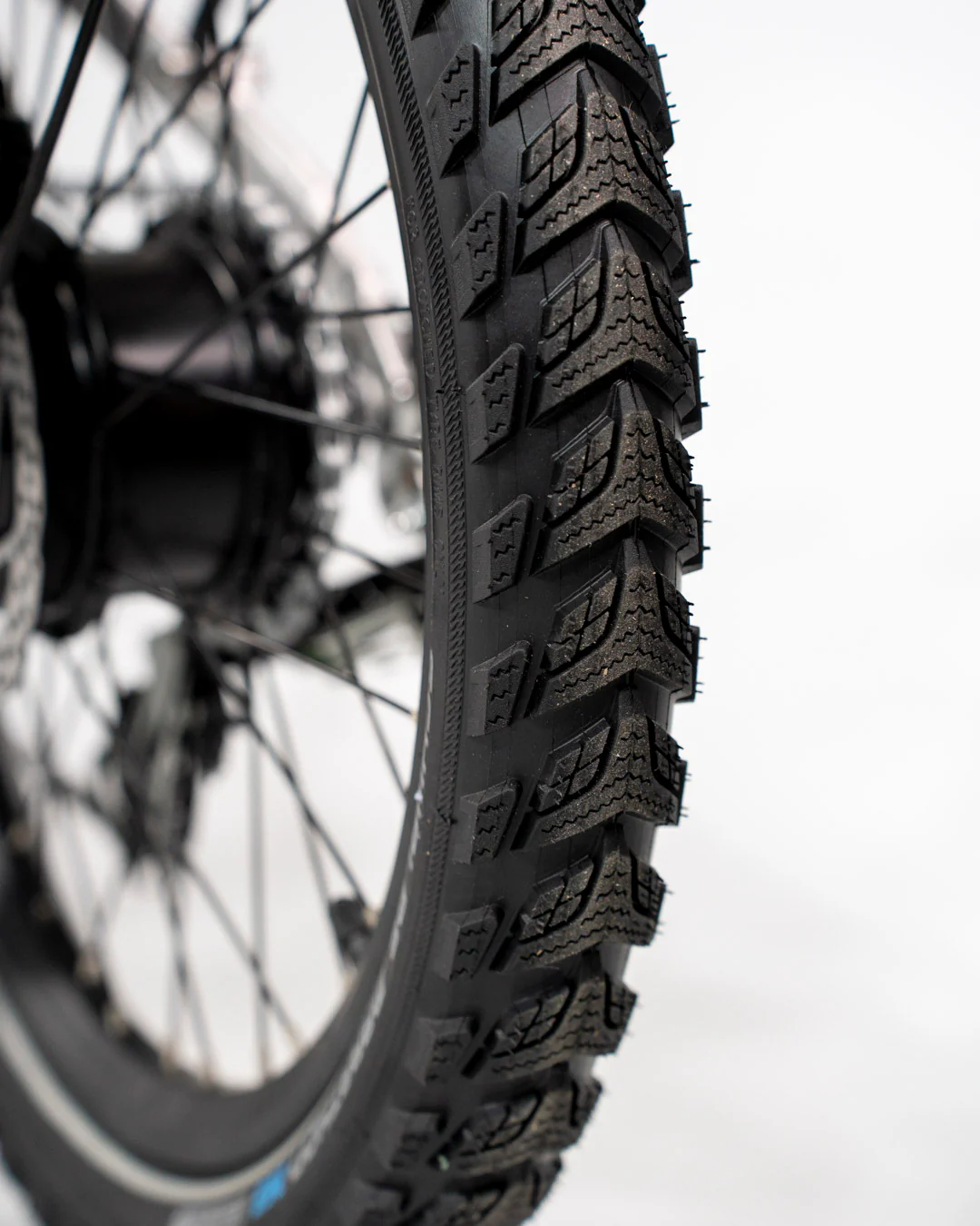 With its fast folding in 3 simple steps, and a quick release seat-post battery that can be charged anywhere, the lightweight and compact e20.8 is ideal for transporting and commuting. With its Shimano 8-speed gears and a 250 watt, 50nm high torque motor, this is a versatile and powerful folding bike.