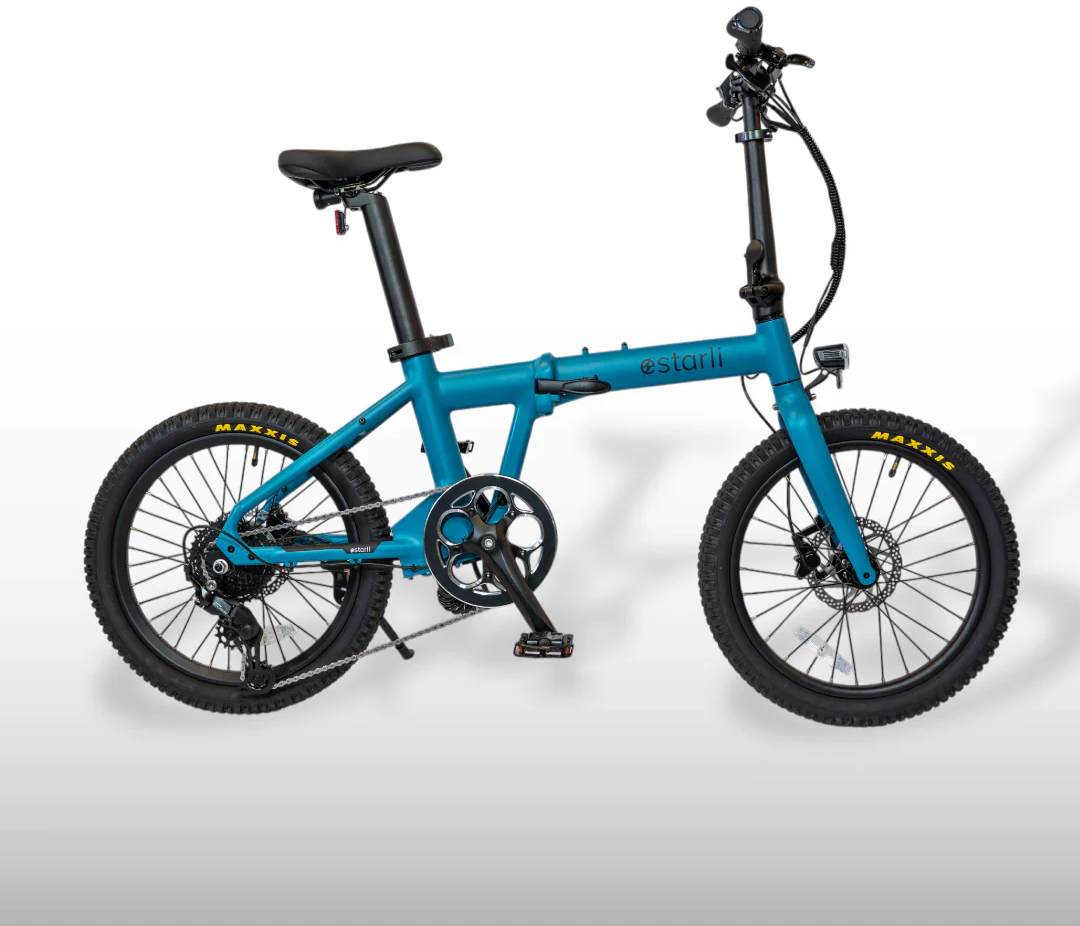 With its fast folding in 3 simple steps, and a quick release seat-post battery that can be charged anywhere, the lightweight and compact e20.9 is ideal for transporting and commuting. With its Shimano 9-speed gears and a 250 watt, 50nm high torque motor, this is a versatile and powerful folding bike.