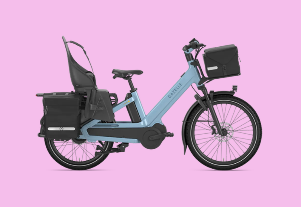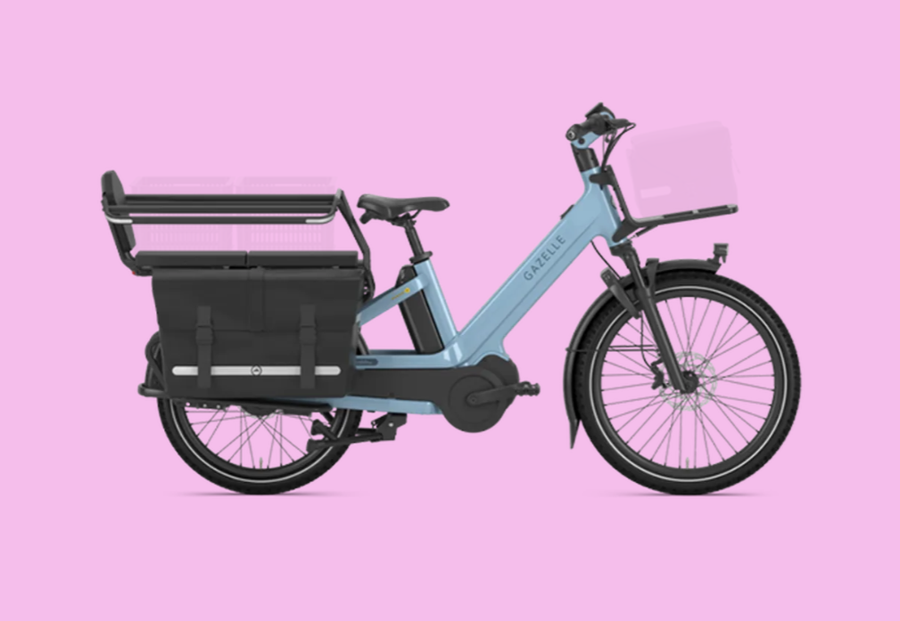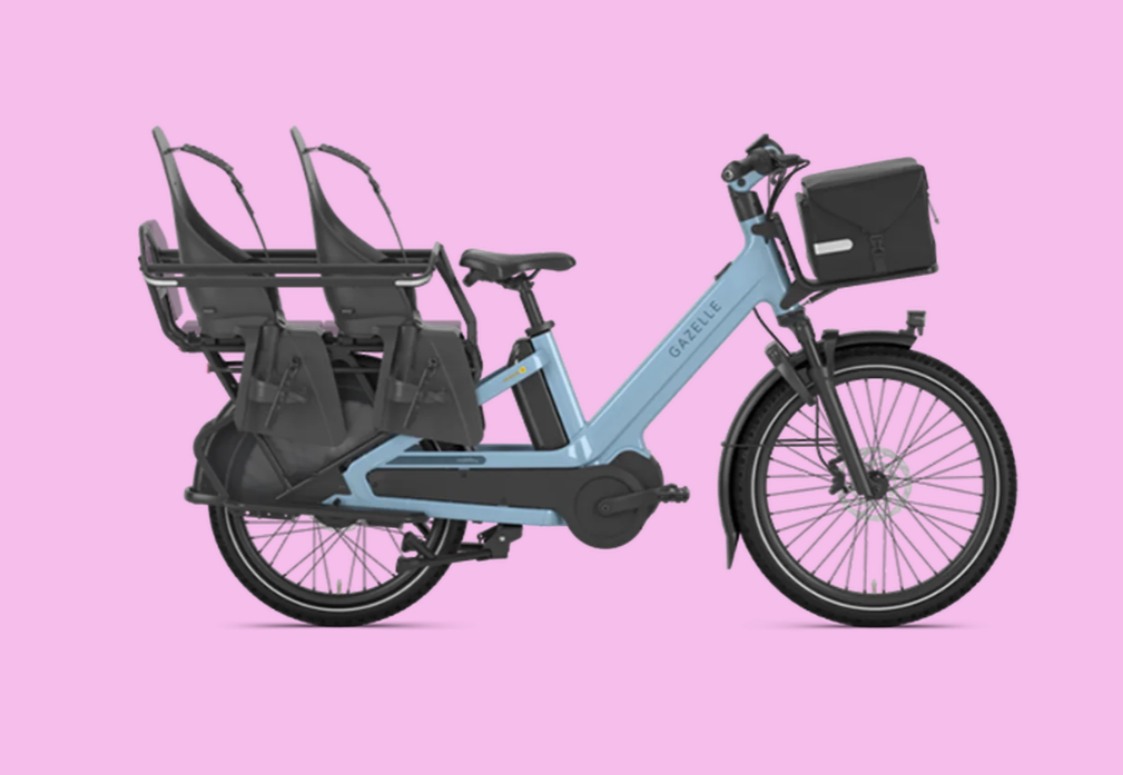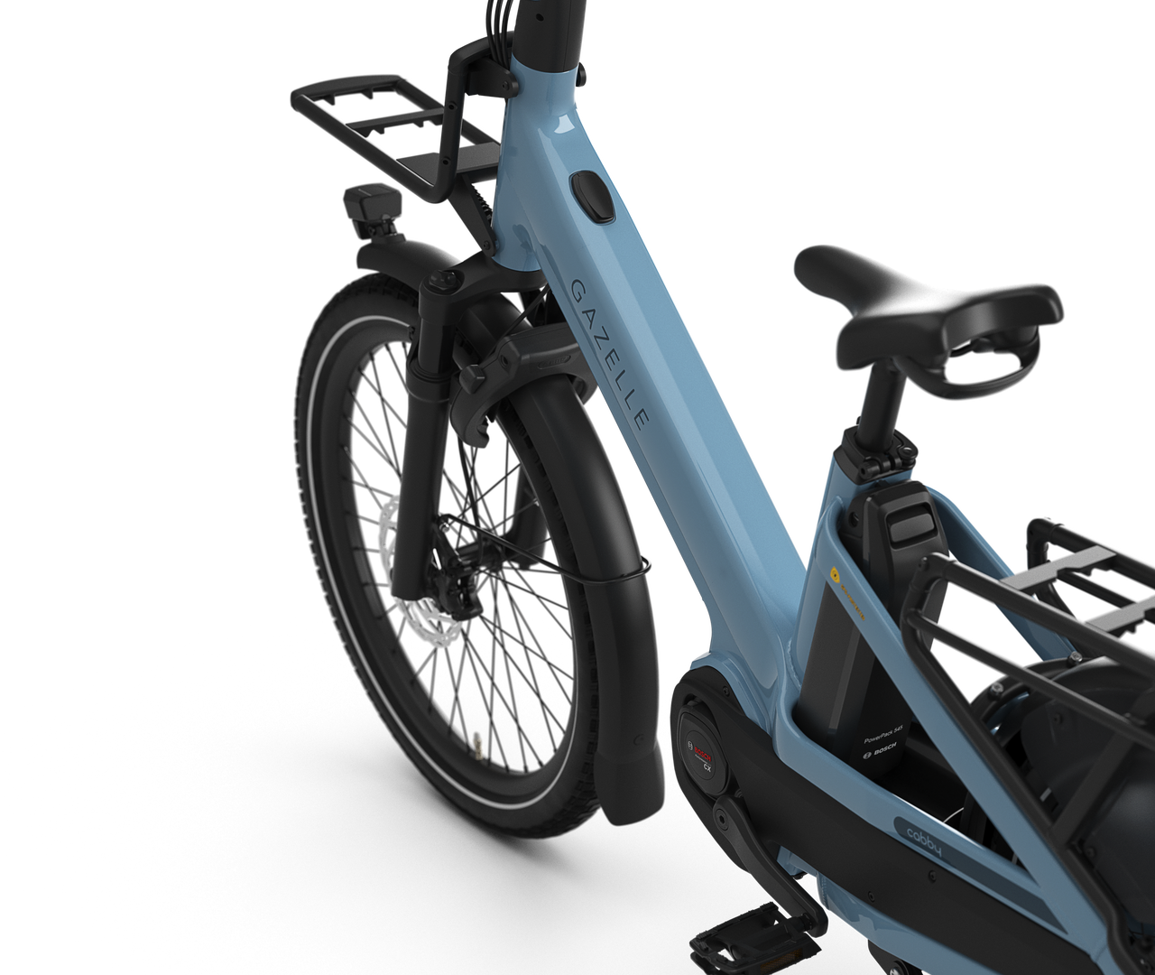 With the Gazelle Cabby C380, you can easily take two children and all your luggage. Thanks to the clever design, you can switch accessories on the front and rear carrier in no time.