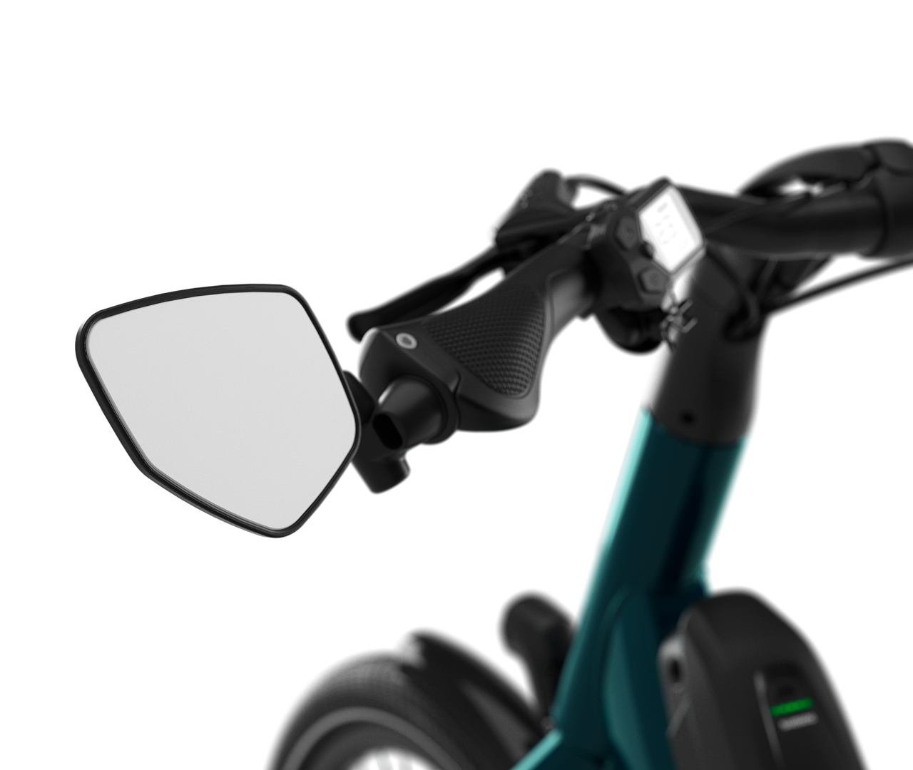 As you sit upright in a relaxed position, cycling through traffic with a good view of your surroundings, your feet are firmly on robust, anti-slip pedals and you can see what’s happening behind you in the handy mirror. The bright LED lights that are powered by the battery, make you visible in the dark. The lights are easily switched on and off using the handlebar-mounted display.