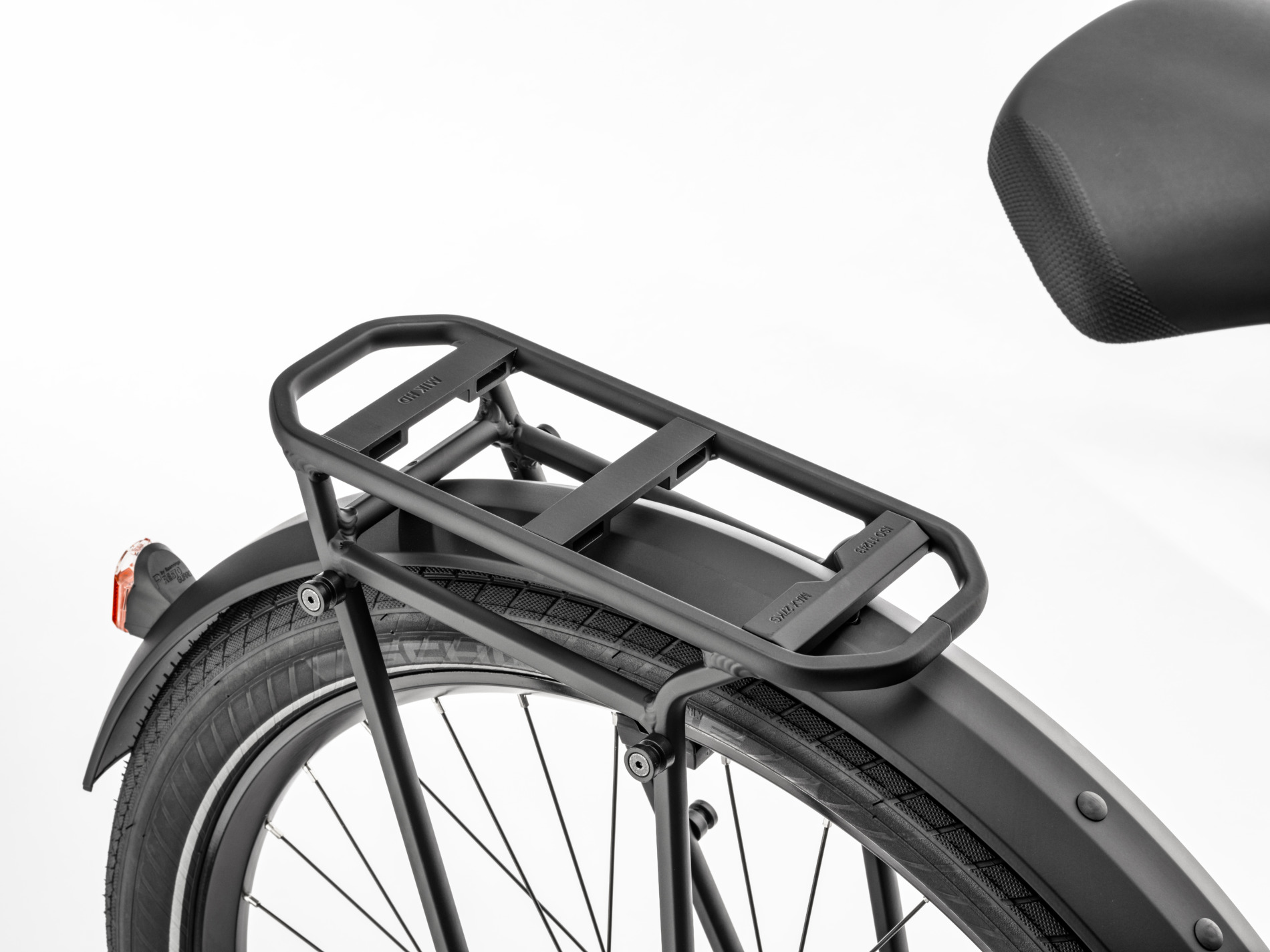 Mardi 27.2 protects you in all weather thanks to its sturdy, stylish mudguards, and keeps your clothes safe from snags and stains with its chain guard. Its quick-mount rear rack lets you easily attach your favourite accessories – pannier, crate, child seat – in just one click.