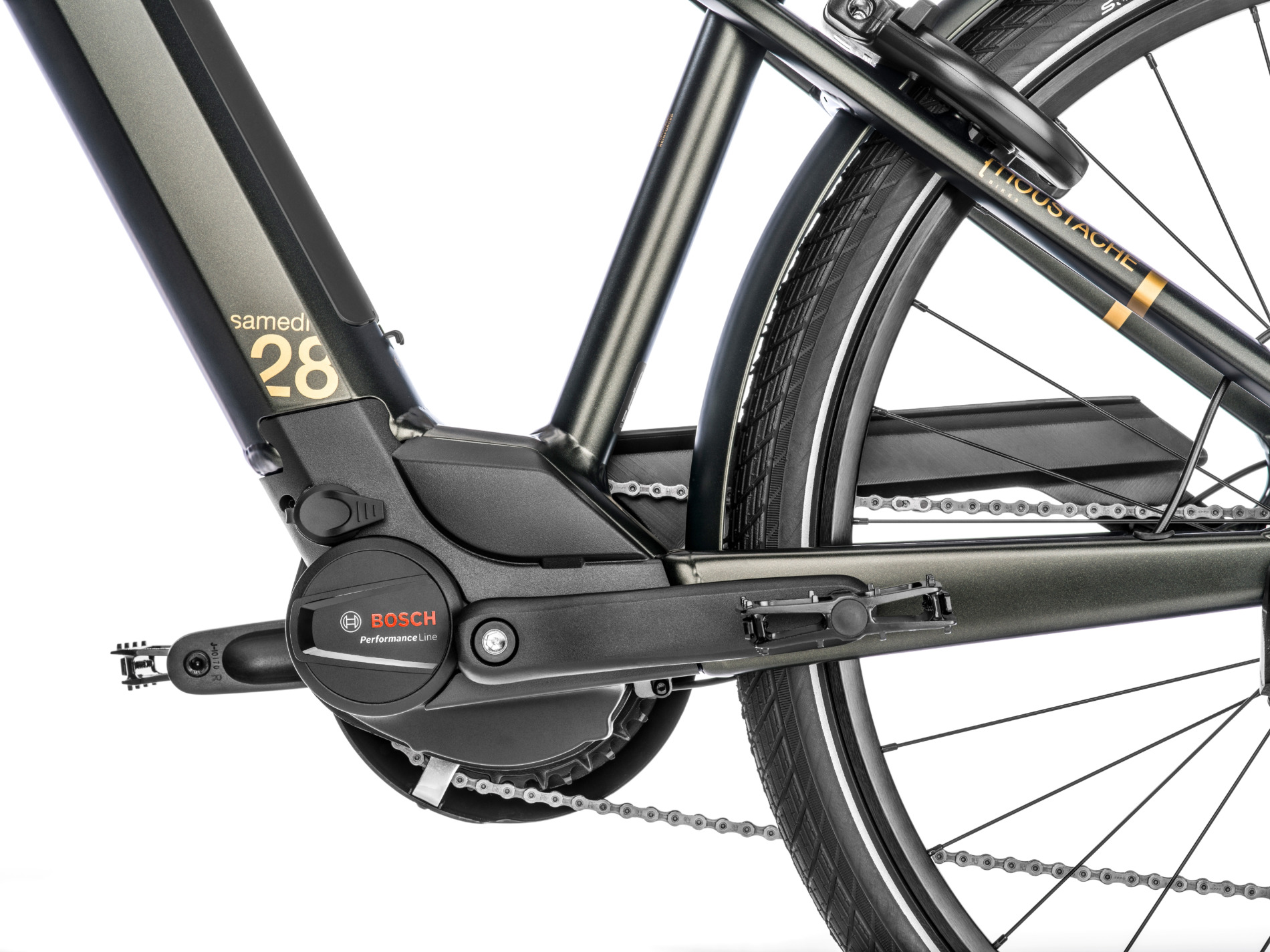The Samedi 28.4 Open is the most fully equipped model in the family. It has a wide, easy-to-step-over frame, an integrated battery that offers even more range, and a Bosch Performance Smart System motor that’s even more powerful and responsive, for even more joyful rides! It also features Smart System connectivity, such as customizable assistance modes and the eBike Lock, which allows the bike to be locked when stationary. It can even be optionally equipped with the Bosch ConnectModule, which includes an alarm function and allows you to track the bike’s location. Smile after smile, with peace of mind. Also available with a closed frame.