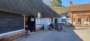 We paused in Kintbury for a well-earned pint at the Blue Ball Inn, where the cider went down a treat. Even with electric assistance from our powerful Bosch motors, a day’s ride still takes it out of you—especially for aging knees and legs. A quick rest, a cold drink, and a stretch made all the difference. And it’s nice to get off the saddle!
