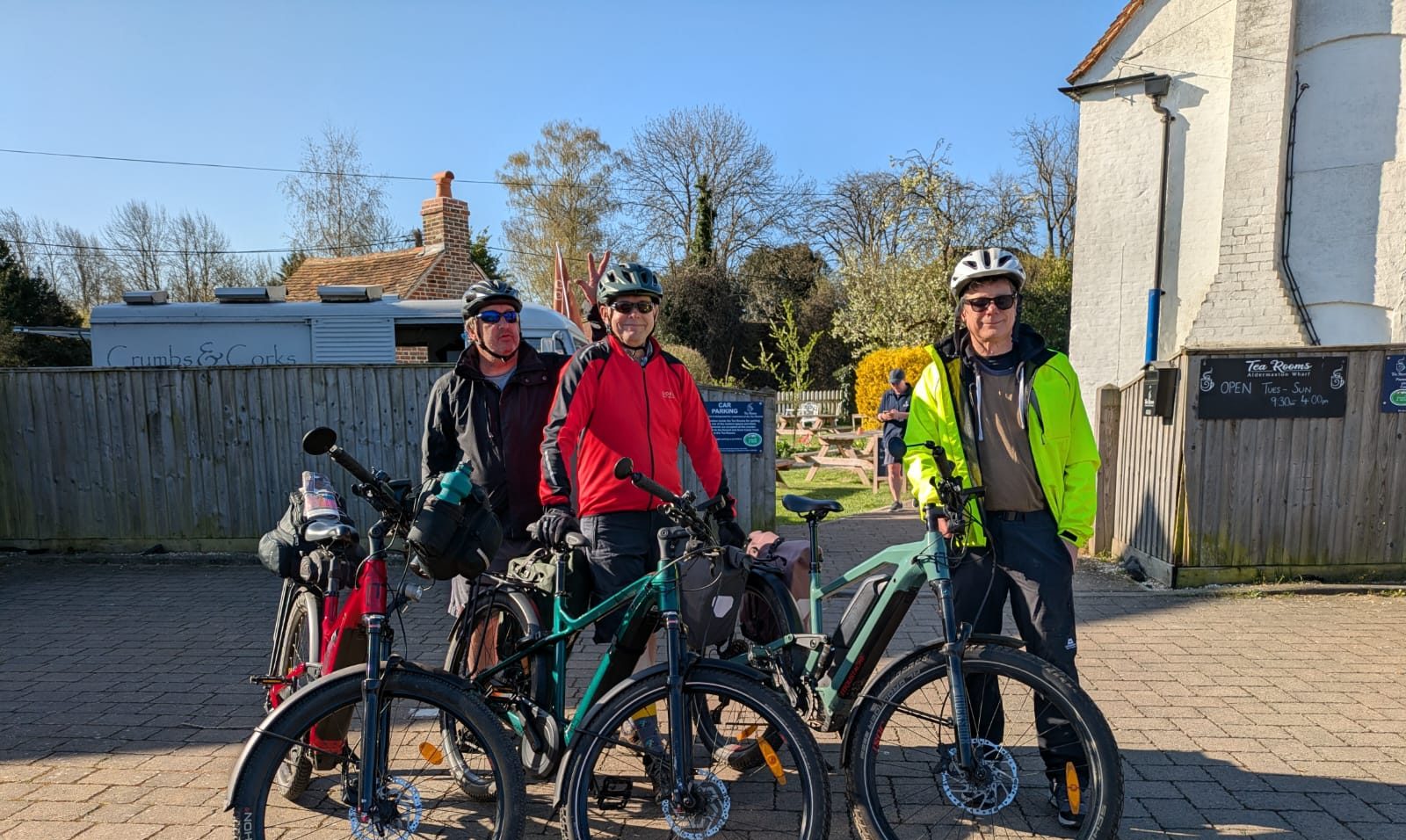 It was a glorious day to set out on the first leg to Devizes, fortified by a fry up at Aldermaston Tea Rooms. We’re riding Moustache ebikes – one Xroad 5 FS, an Xroad 7 and a Weekend twin battery with full suspension – perfect for this sort of trip!
